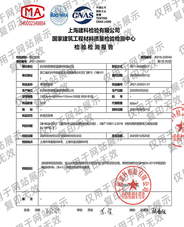 上海建科1200mm×600mm×140mm 030级X250 B1级